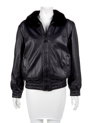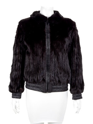 Black Leather and Mink Reversible Bomber Style Jacket,1990-2000's