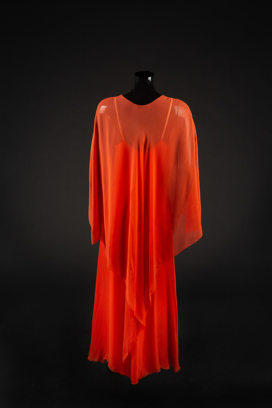 Dress and Poncho, 1970s. Dress designed by Edith Head and made by Western Costume Company in Los Angeles.