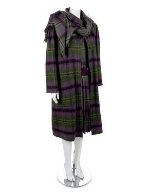 Adele Simpson Purple Tartan Wool Coat, Dress, Belt, Scarf, 1980s