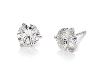 A Pair of 14 Karat White Gold and Diamond Stud Earrings,