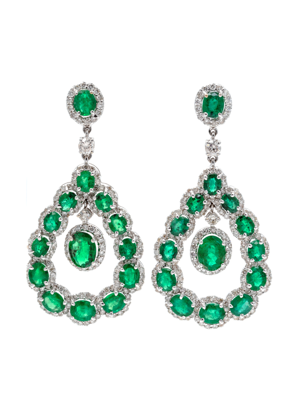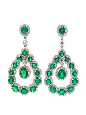 containing 28 oval mixed cut emeralds weighing approximately 16.00 carats total and 284 round brilliant cut diamonds weighing approximately 5.50 carats total.
