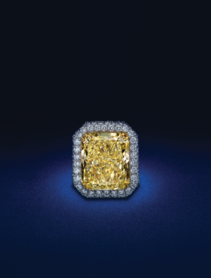 An Exceptional Fancy Yellow Diamond, Platinum and Diamond Ring,