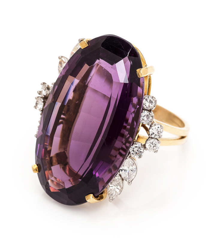 An 18 Karat Yellow Gold, Platinum, Amethyst and Diamond Ring, H. Stern,