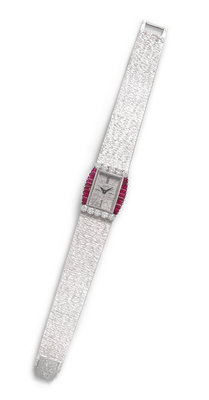 An 18 Karat White Gold Diamond and Ruby Ref. 3876A6 Wristwatch, Piaget,