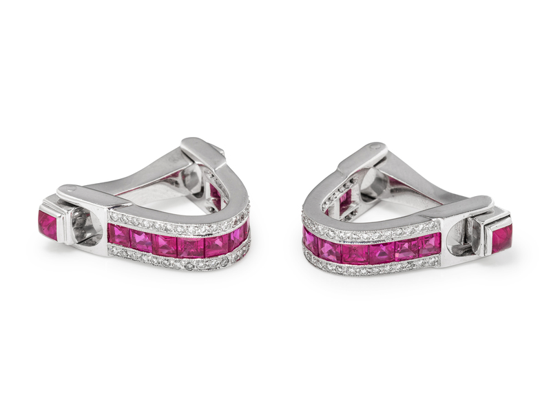 A Pair of White Gold, Ruby and Diamond Stirrup Cufflinks,