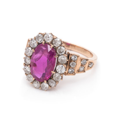 A Victorian Yellow Gold, Burmese Ruby and Diamond Ring,