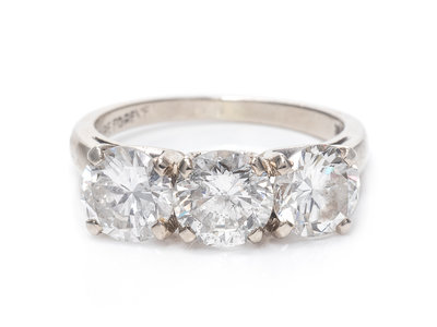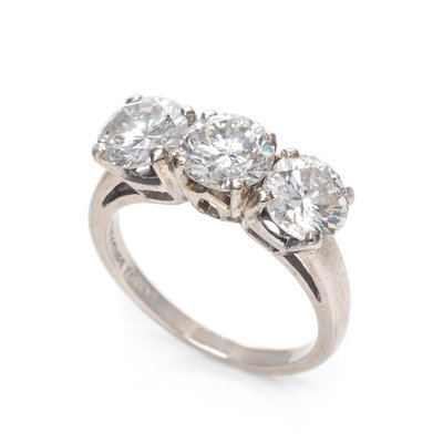consisting of three round brilliant cut diamonds weight approximately 2.65 carat total.