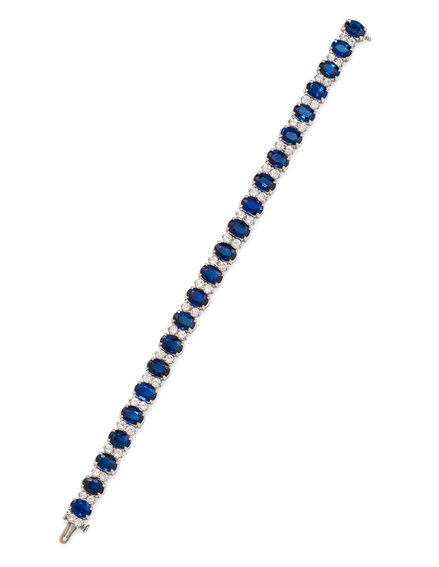containing 22 oval brilliant cut sapphires measuring approximately 7.00 x 5.00 mm and 44 round brilliant cut diamonds weighing approximately 3.50 carats total.