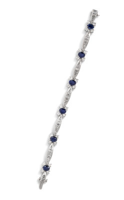 A 14 Karat White Gold, Sapphire and Diamond Bracelet,