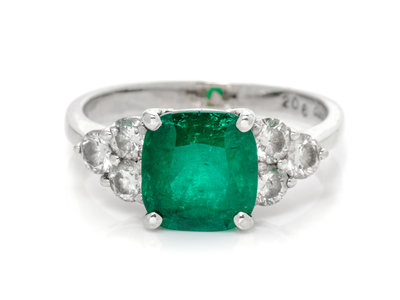 An 18 Karat White Gold, Emerald and Diamond Ring,