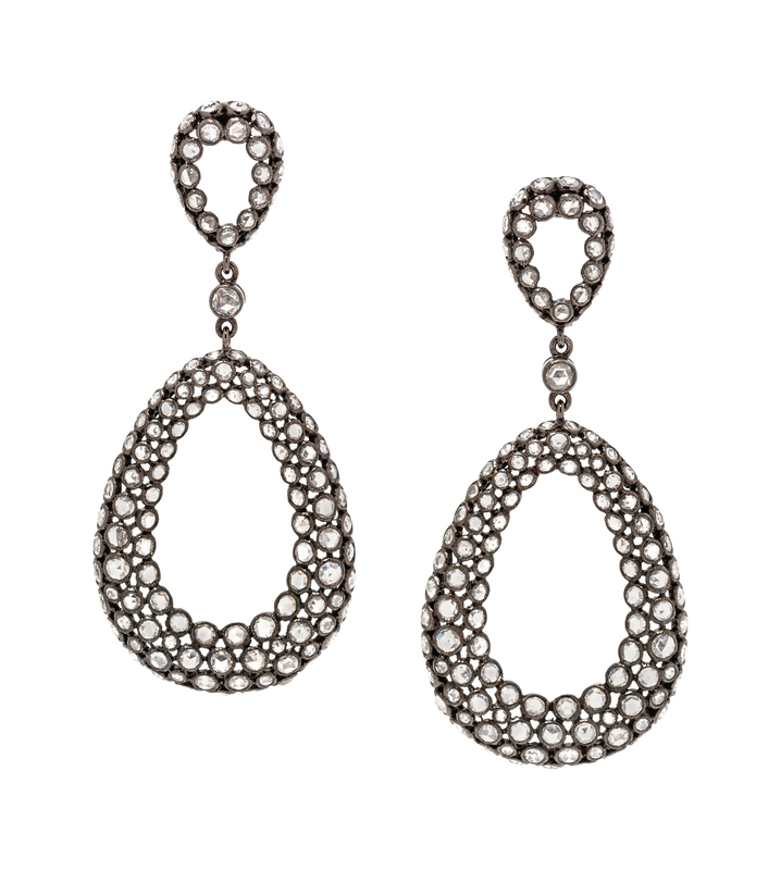 A Pair of 18 Karat White Gold, Black Rhodium and Diamond Earrings,