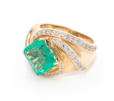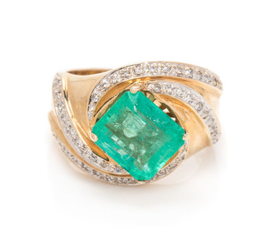 A 14 Karat Yellow Gold, Emerald and Diamond Ring,