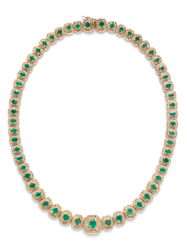 A 14 Karat Yellow Gold, Emerald and Diamond Necklace,