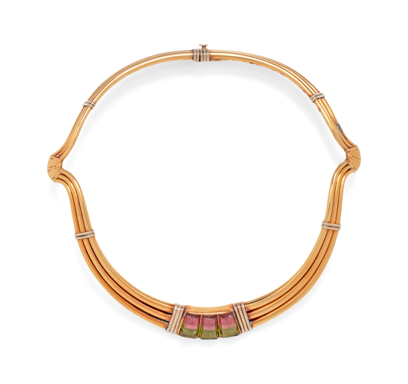An 18 Karat Yellow Bicolor Gold and Bicolor Tourmaline Collar Necklace, Gucci,