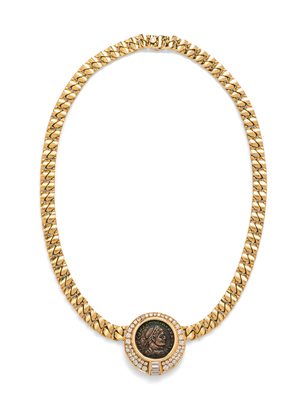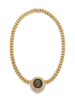 An 18 Karat Yellow Gold, Diamond and Roman Coin Necklace, Bvlgari,