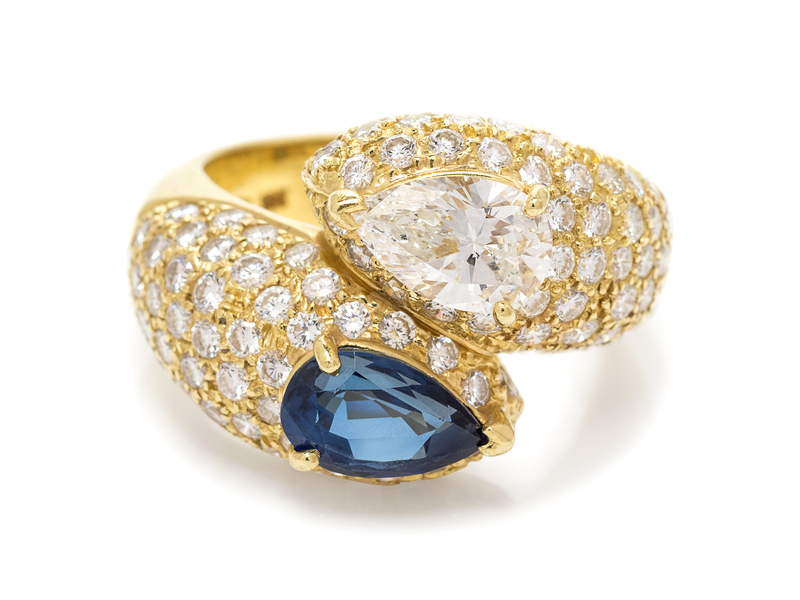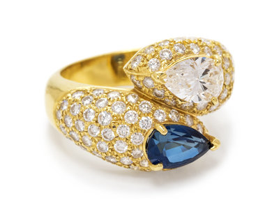 A Vintage 18 Karat Yellow Gold, Sapphire and Diamond Bypass Ring, Cartier,
