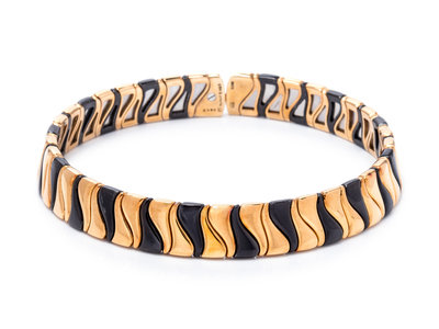 An 18 Karat Yellow Gold and Blackened Stainless Steel Collar Necklace, Marina B., Circa 1986,