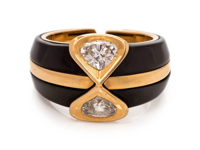 An 18 Karat Yellow Gold, Diamond and Blackened Stainless Steel and Ring, Marina B.,