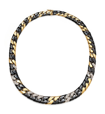 An 18 Karat Yellow Gold, Blackened Stainless Steel and Diamond Curb Link Necklace, Bvlgari,