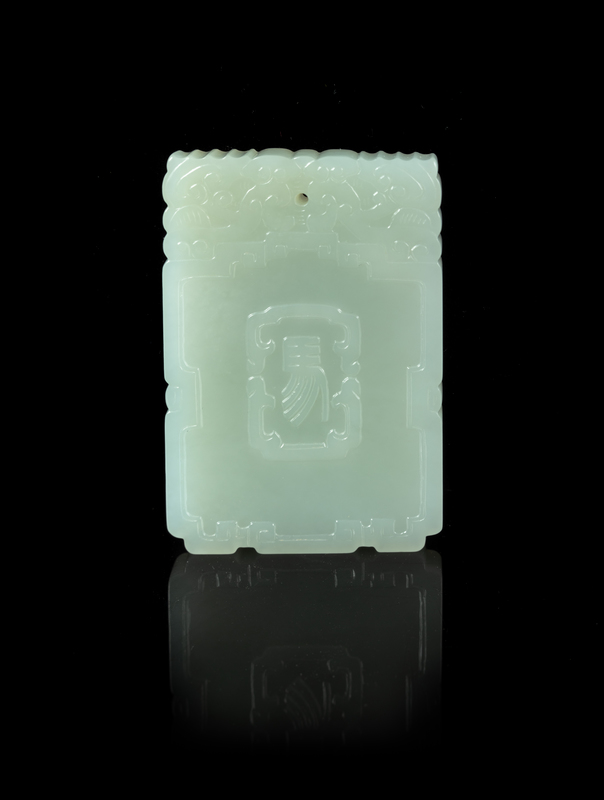 A Chinese Carved Celadon Jade Plaque