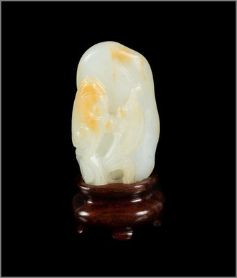 A Chinese Russet and White Jade Carving of Lingzhi