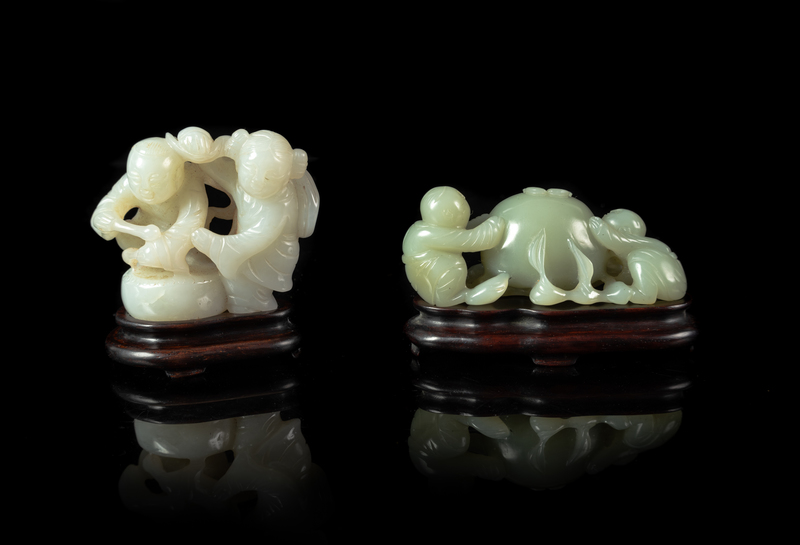 Two Chinese Jade 'Boys' Figural Groups