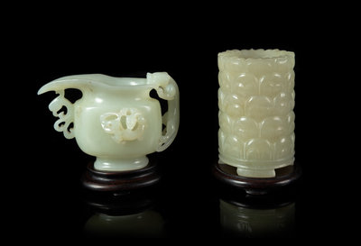 Two Chinese Pale Celadon Jade Vessels