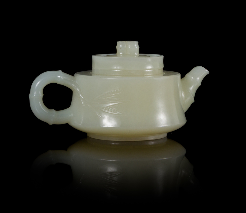 A Chinese White Jade 'Bamboo' Teapot