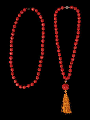 Two Chinese Cinnabar Necklaces