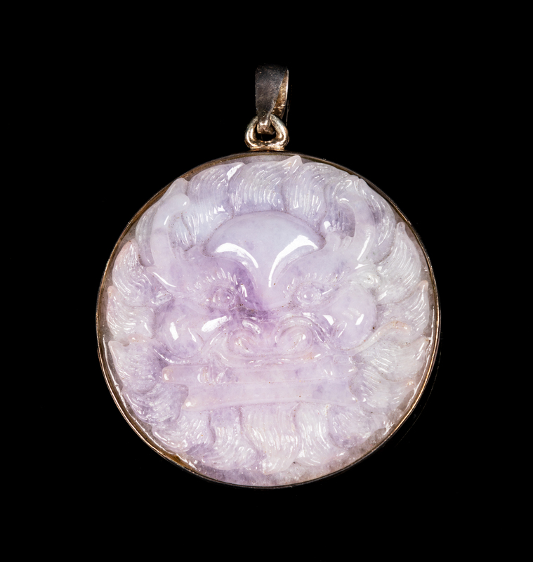 A Chinese Lavender and Pale Celadon Jadeite Circular Pendant