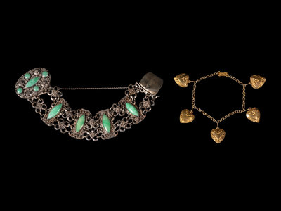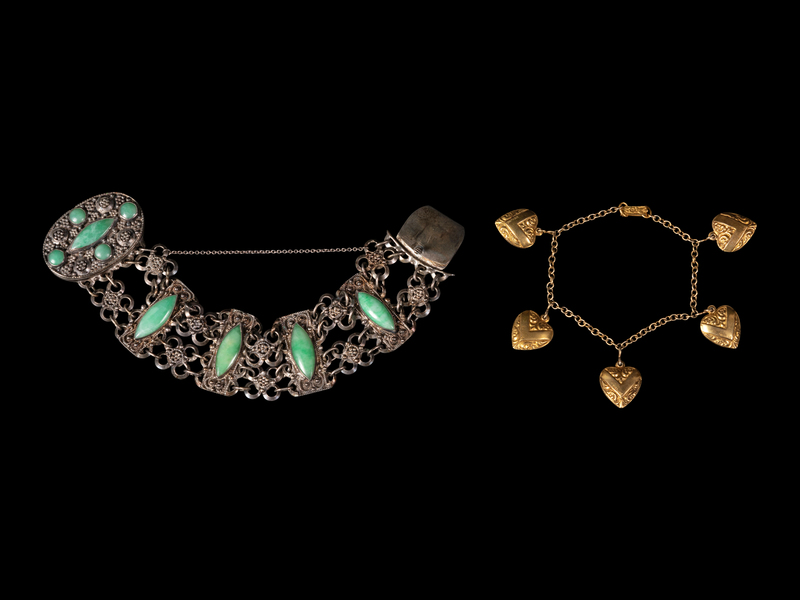 the first inset with small jadeite plaques, the second with heart-shaped charms.