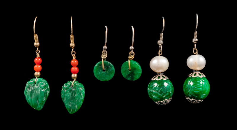 Three Pairs of Chinese Spinach Jade Earrings