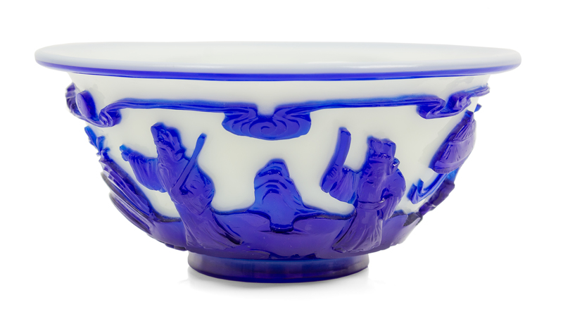 A Chinese Sapphire-Blue Overlay White Peking Glass Bowl