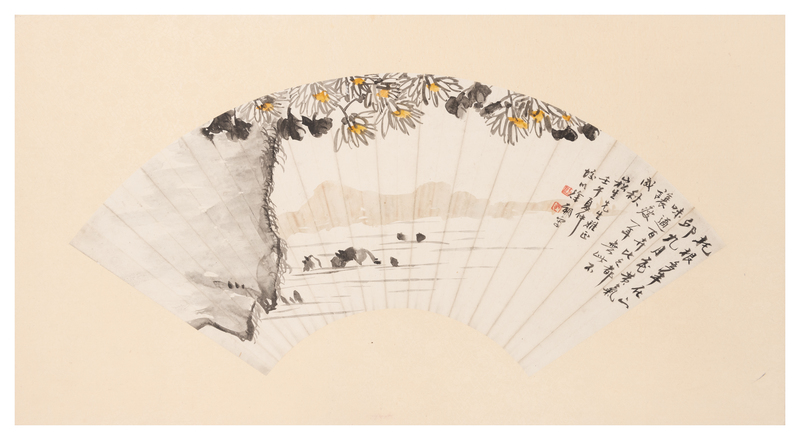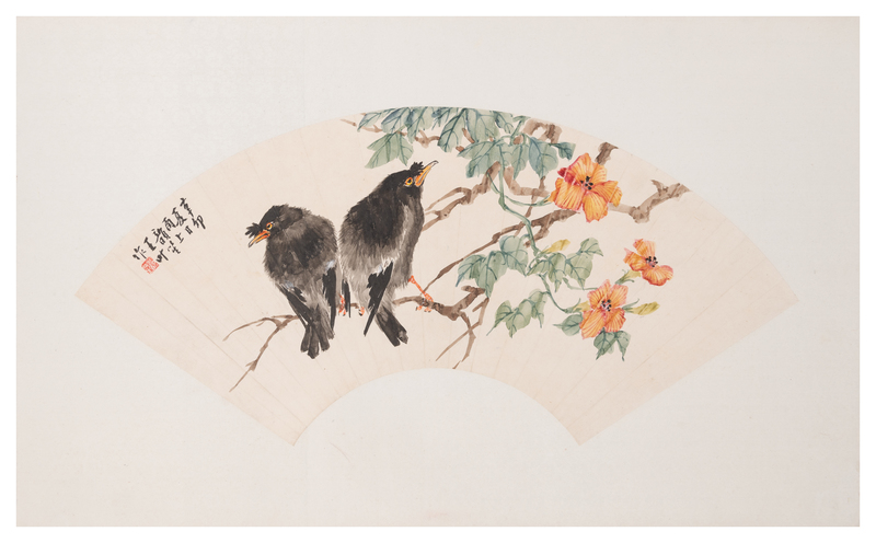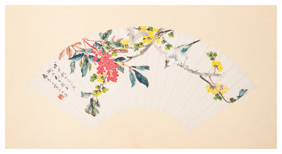 Three Chinese Ink and Color Paintings on Fan Leaves