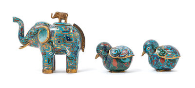 Three Chinese Cloisonné Enamel Animal-form Covered Vessels