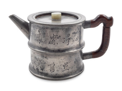 A Chinese Pewter Encased Yixing Pottery Teapot