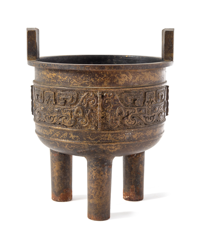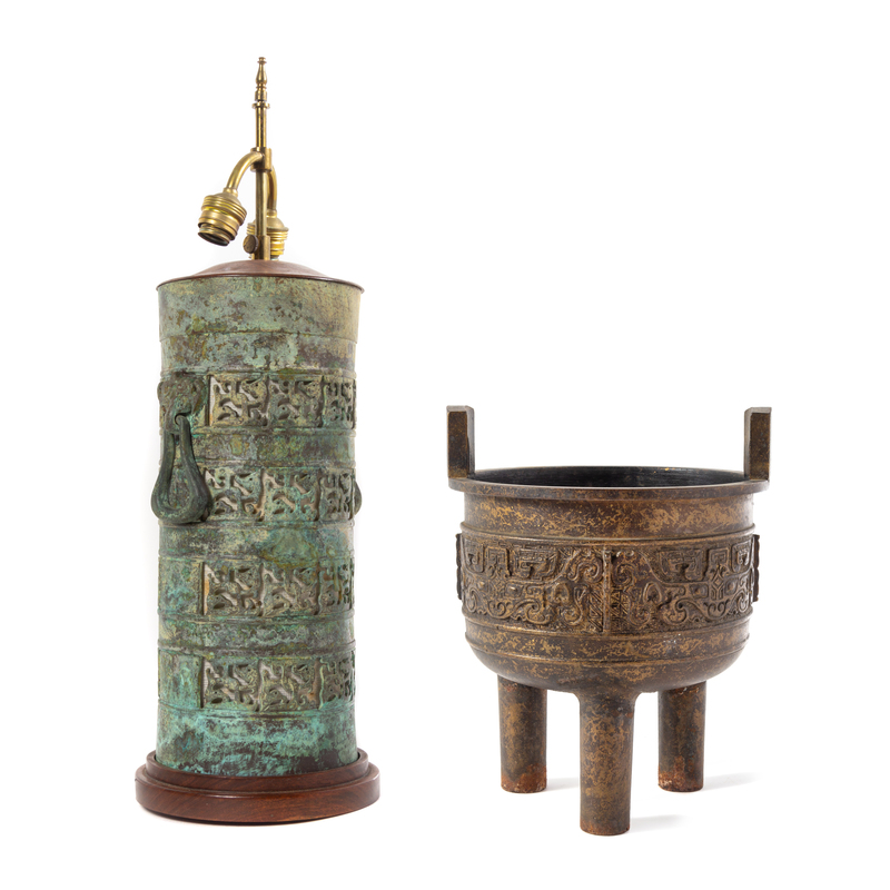 comprising ding-form incense burner and one vessel mounted as a lamp.