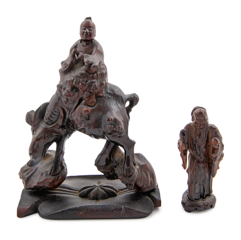 the first of a figure riding a water buffalo above a rocky base, the second standing figure of Shoulao.