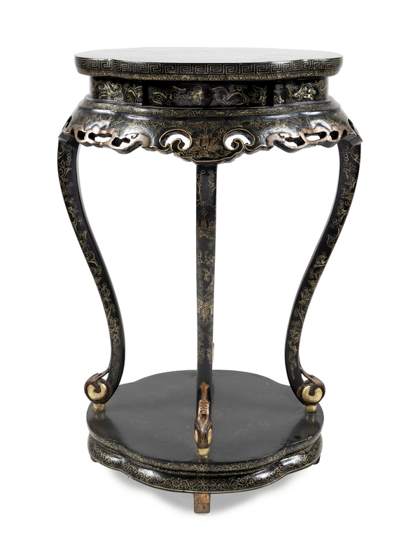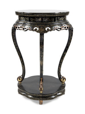 A Chinese Gilt Decorated Black Lacquered Side Stand