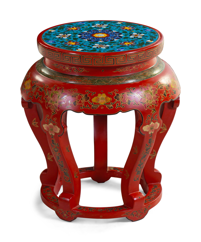 A Chinese Cloisonné Enamel Inset Tianqi and Red Lacquer Stool