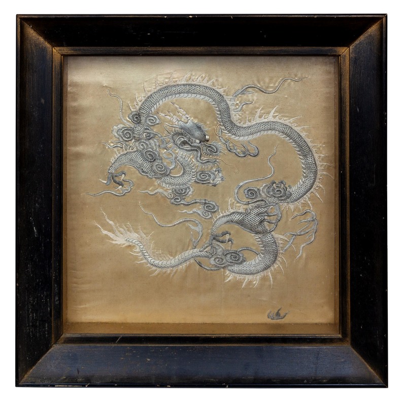 A Pair of Chinese Beige Ground Embroidered Silk Panels