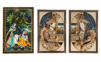 comprising an example depicting a couple and a white ox, a pair of examples showing an emperor and an empress.