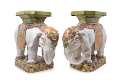 A Pair of Thai Style Porcelain Elephant-Form Stools