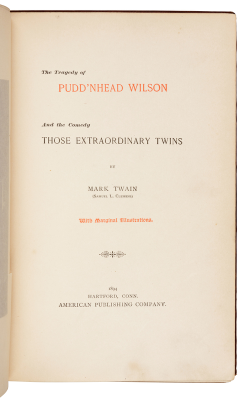 CLEMENS, Samuel Langhorne ("Mark Twain") (1835-1910). The Tragedy of Pudd’nhead Wilson and the Comedy Those Extraordinary Twins. Hartford: American Publishing Company, 1894.