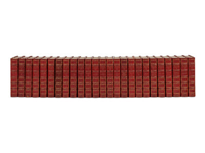 25 volumes. Engraved frontispieces. Half red morocco gilt (some wear to joints and extremities).