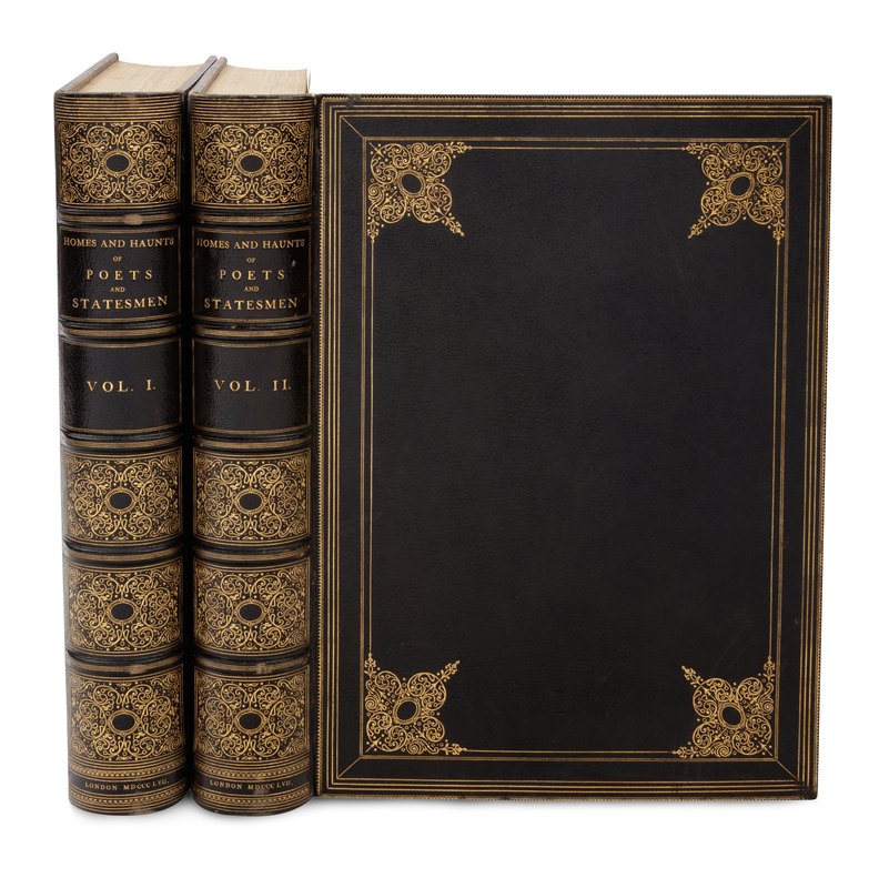 2 volumes, folio (389 x 275 mm). Original text window-mounted into Whatman Turkey Mill paper watermarked 1863 or later. EXTRA-ILLUSTRATED by the addition of 305 portraits and views, many window-mounted or mounted. (Some minor offsetting, a few tiny spots.) Contemporary black crushed levant gilt, spines in 6 compartments with 5 raised bands gilt, board edges and wide turn-ins gilt, top edge gilt, others uncut STAMP-SIGNED BY BRADSTREET (a few small scuffs).