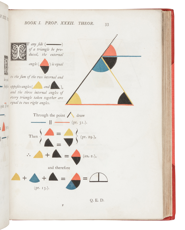 [EUCLID (fl. ca 300 B.C.)] . BYRNE, Oliver (ca 1810-ca 1880), editor. The First Six Books of the Elements of Euclid in which coloured diagrams and symbols are used instead of letters for the greater ease of learners. London: Charles Whittingham at the Chiswick Press for William Pickering, 1847.