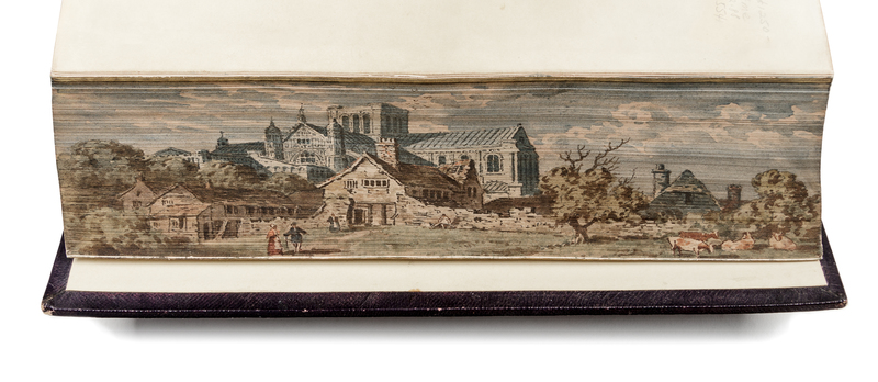 8vo (256 x 167 mm). Illustrated throughout. Original purple morocco gilt, edges gilt, concealing a FORE-EDGE PAINTING of Winchester Cathedral. Provenance: Reeve (bookseller's ticket); Estelle Doheny (1875-1958) American book collector (morocco booklabel).