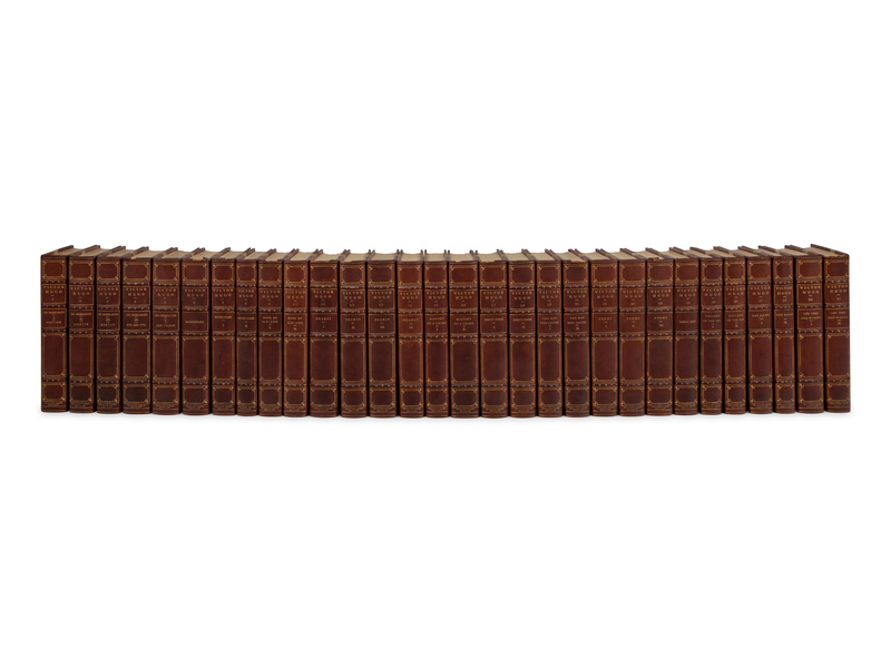 30 volumes, 8vo (220 x 145 mm). Frontispiece to each volume, numerous plates. Contemporary half green morocco gilt, top edge gilt, others uncut (spine ends slightly bumped, sunned).
