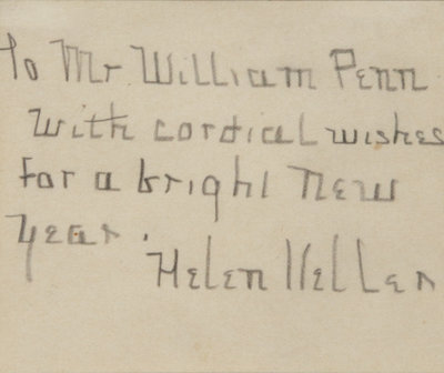 1 page, on card, matted and framed with photographic portrait (unexamined out of frame). "To Mr. William Penn with cordial wishes for a bright new year."